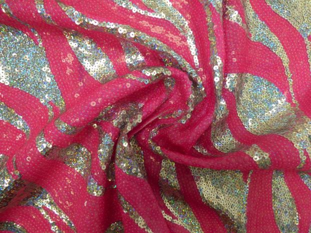 A Design Of Fancy Sequins Stitched On In Cerise Pink With Silver On Mesh Jersey Cloth