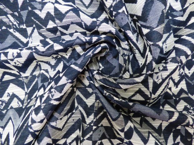 An Ex-Designer Jacketing Jacquard Linen Look Printed Design In Navy And Cream