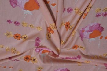 An Ex Designer Lawn Digital Printed Floral Design In Pink, Blue, Orange And Neutral Tones