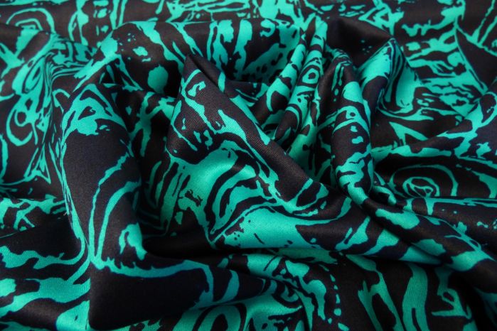 A Soft Ex Designer Sheened Satteen In a Navy/Jade Retro Abstract Print