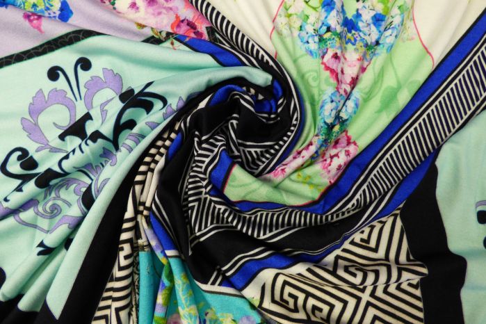 An Ex-Designer Large Patchwork Style Stretch Jersey Print.