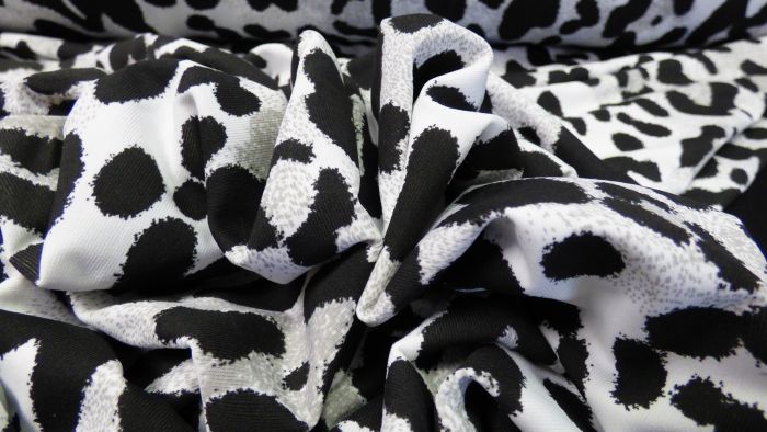 A Polyester/Spandex Jersey Digital Animal Print In Tones Of Grey, Black And White