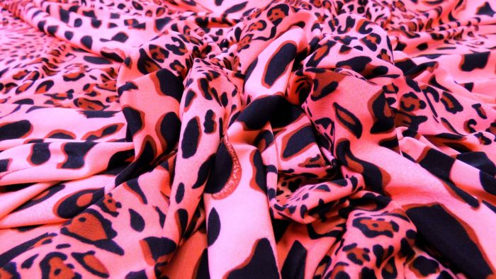 A Polyester/Spandex Jersey Digital Animal Print In Tones Of Black, Deep Red And Vibrant Pink