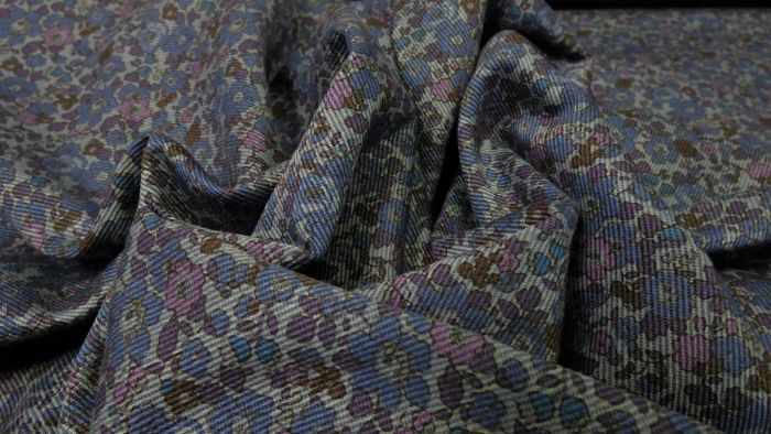 An Ex-London Designer Ditsy Floral Print In Soft Blue And Purple Tones