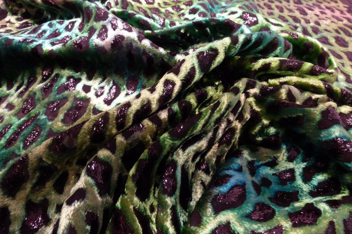 A Clipped Jacquard Velour-Type Green Tone Tyedye-Effect Devore Design On Balck Chiffon Base.