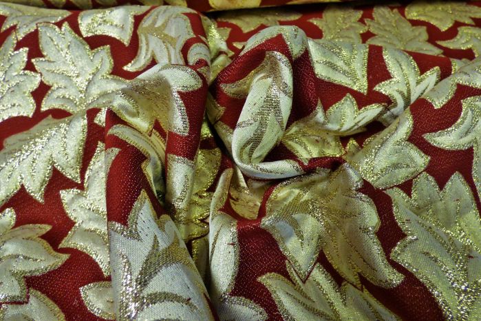 A Brocade Jacquard In Deep Red, Gold & Cream Tones