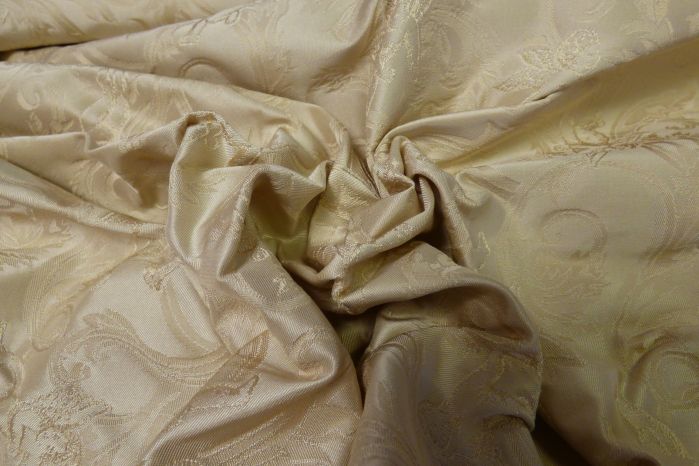 A Duchess Satin Jacquard Cherub Style Design in Soft Champagne/Gold