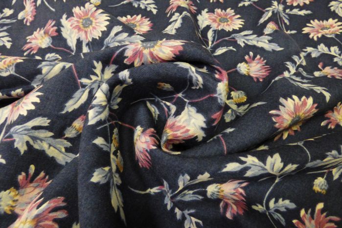 An Ex-Designer Challis Printed Floral Design in Teal, Mauve & Mint