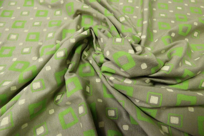 A Jersey Geometric Transfer Printed Retro Design In Taupe/Green & Cream Tones