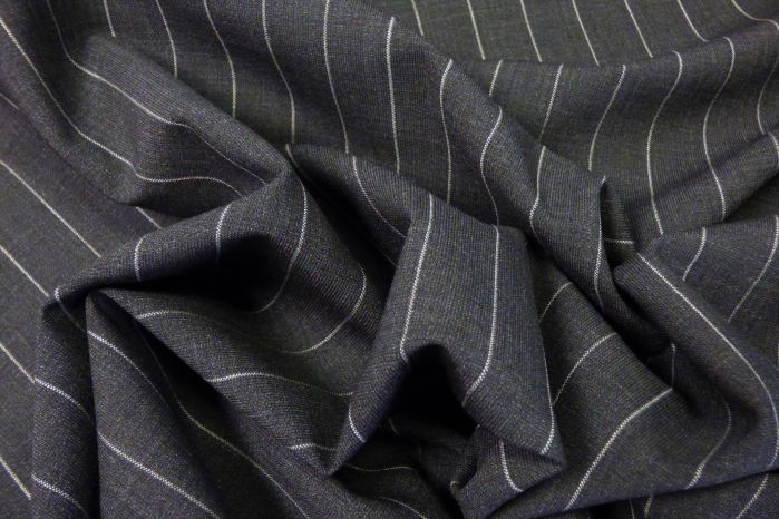 A Chalk Stripe Superfine Suiting with Comfort Stretch in Charcoal & Chalk