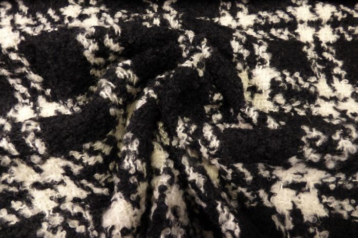 A Chunky and Thick Boucle Houndstooth Style Jacketing Cosy Coating in Monochrome
