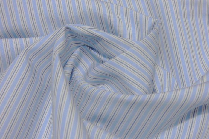 An Italian Ex-Designer Shirting Stripe In Sky Blue, Grey And White
