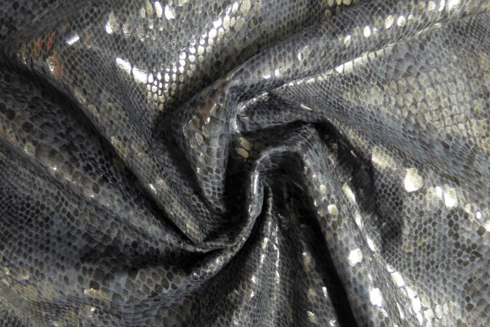 A Beautiful Velour Snakeskin Print in Grey & Black Overlaid With Skin-Effect Clear Transfer Foiling - Stunning Fabric!