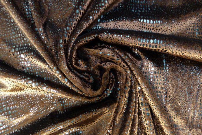 A Stunning Black Over-foiled Animal Skin Print On Dark Copper Crushed Velour