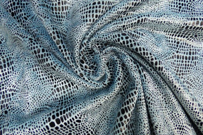 A Stunning Black Over-foiled Animal Skin Print On Ice Blue Crushed Velour