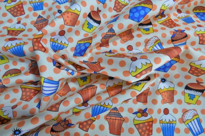 A Colourful 100% Cotton Poplin Digital Print In Pink, Cream, Blue, Yellow, Brown, Orange and Purple