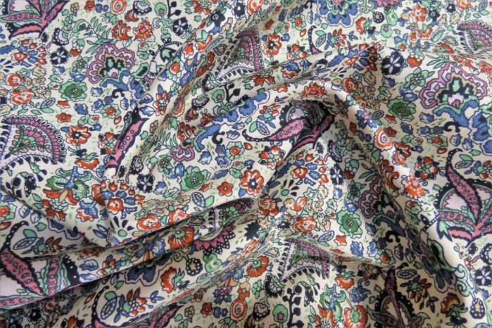A Colourful 100% Cotton Poplin Digital Print In Ivory, Blue, Pink, Black, and Burnt Orange
