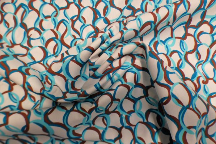 A Colourful 100% Cotton Poplin Digital Print in Chocolate & Turquoise Tones