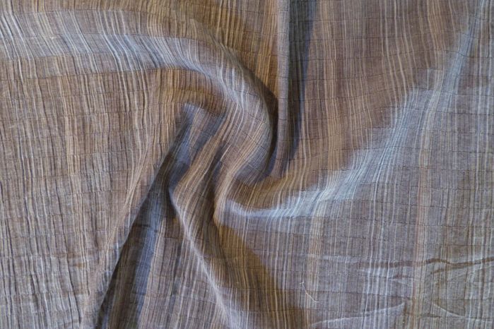 Crinkled Pleat Check Style Seersucker In Tones of Fawn, Tan, Beige