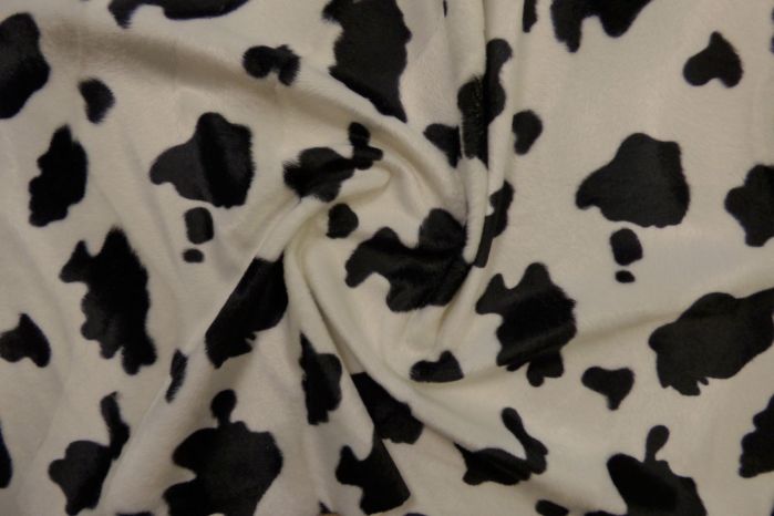 Plush Faux Fur Fabric In Beautiful Wavy-Pile Black & White Cow Design