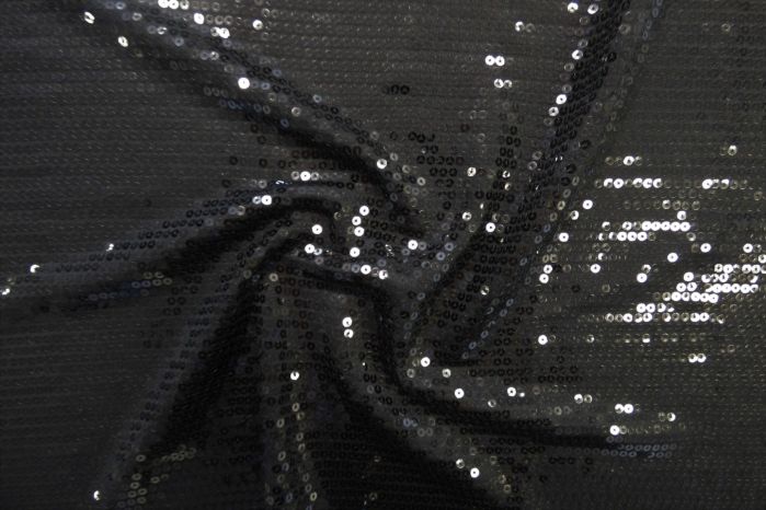 Classy Korean Quality Black On Black Sewn-On Sequins On A Knitted-Back Slightly Stretchy Base Fabric.