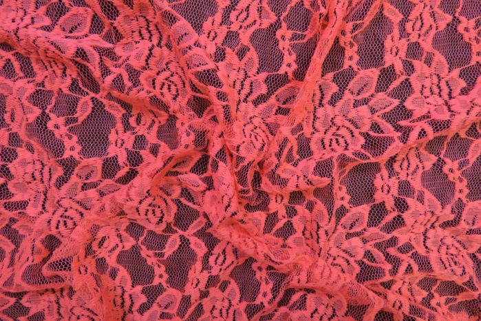 Note: The Images Have Been Taken With A Contrasting Dark Shade Knitted Lining Underneath This Lace Fabric Which We Think Constrasts Nicely With This Coral Pink On Coral Pink Lace