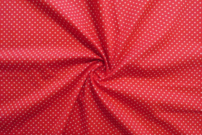 A Lovely Cotton Poplin Digital Polka Dot Print In Crimson And Ivory