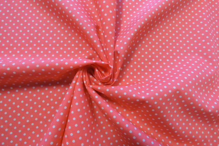 A Lovely Coral And Ivory Polka Dot Cotton Poplin