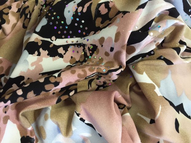 A Slinky Sequin Print Jersey with a Muted Abstract Floral Print