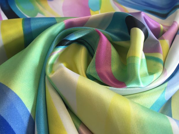 A Vivid Abstract Swirl Print Satin in Azure Blue/Lime, Candy & Black