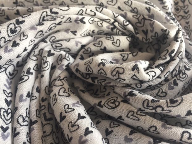 A Cotton Muslin Monochrome Loveheart Print