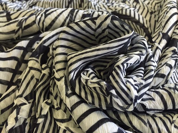 A Classic Monochrome Stripe Crinkle Chiffon with a Ribbon Applique Overlay