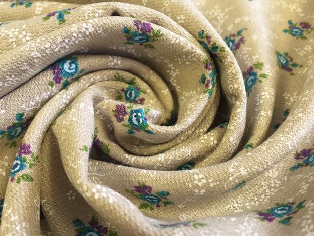 A Vintage Style Paint Effect Turquoise Floral Design on Oatmeal Coloured Canvas