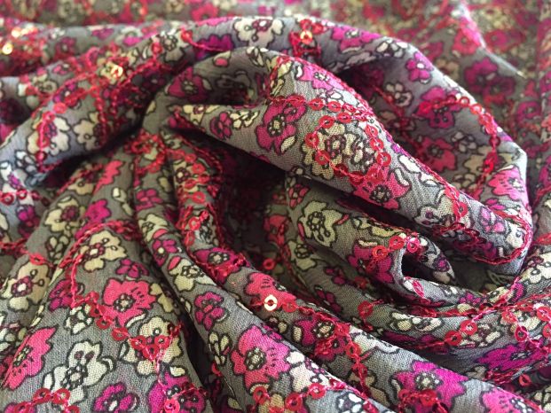 A Stunning & Pretty Floral Crinkle Chiffon with a Sequin Overlay