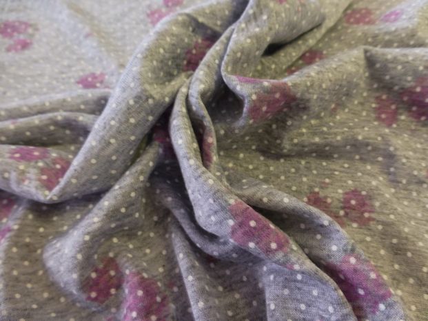 Light Grey Jersey with Tiny White Polka Spots Splashed with Pink