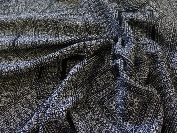A Soft Textured Stretch Ponte Roma In A Monochrome Aztec Print