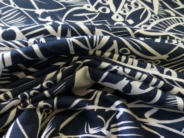 Bold Leaf Print Jersey in Rich Grey & Ivory