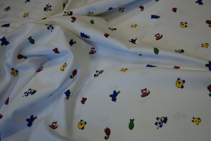 So Cute! A Lovely Quality White Cotton Poplin Dotted with Little Animals & Flowers