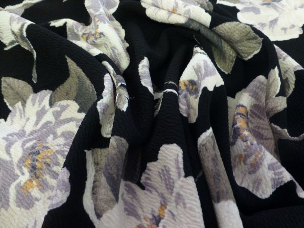 A Pretty Textured Floral Ponte Roma in Moss Green & Ivory on Black