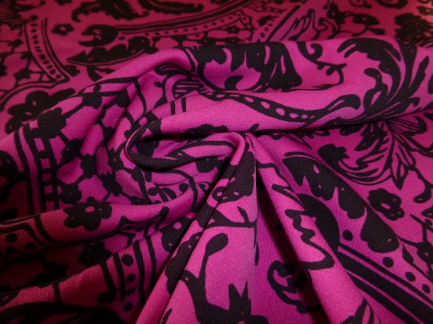 A Vivid Pink Floral Damask Scuba Type Ponte Roma Jersey