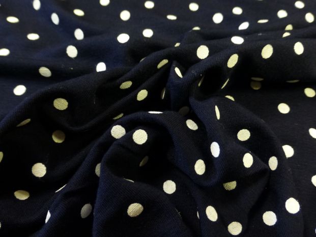 A Simple but Versatile Polka Spot Jersey in Navy & White