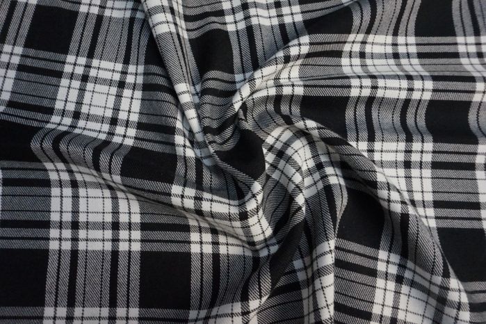Tartan Style Check Suiting Fabric in Black and White