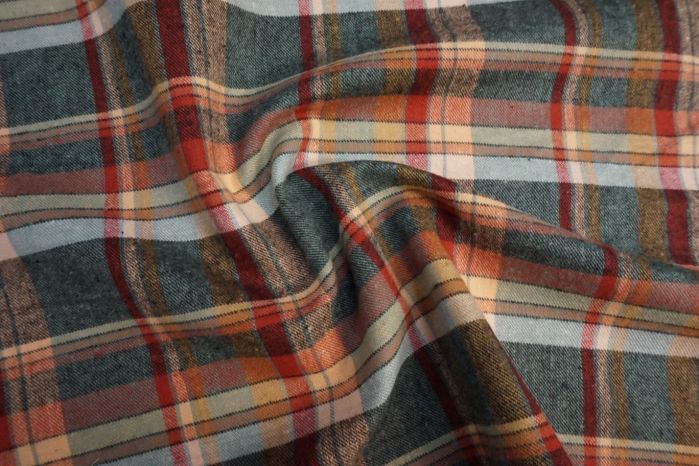 Brushed Cotton Tartan Style Check in Olive Green, Lemon and Wine Tones