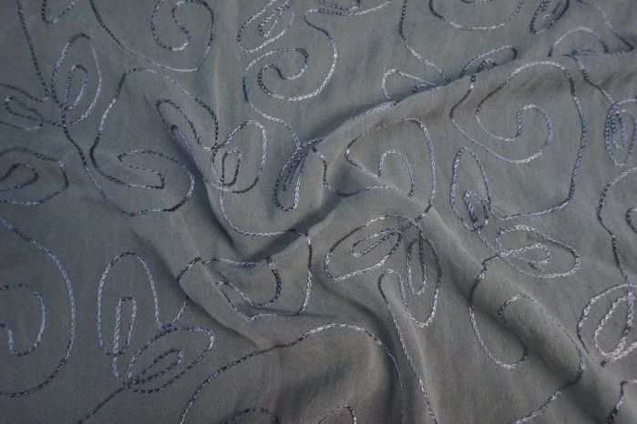 A Soft Crepe Silk Chiffon Stitched Embroidery in Soft Grey