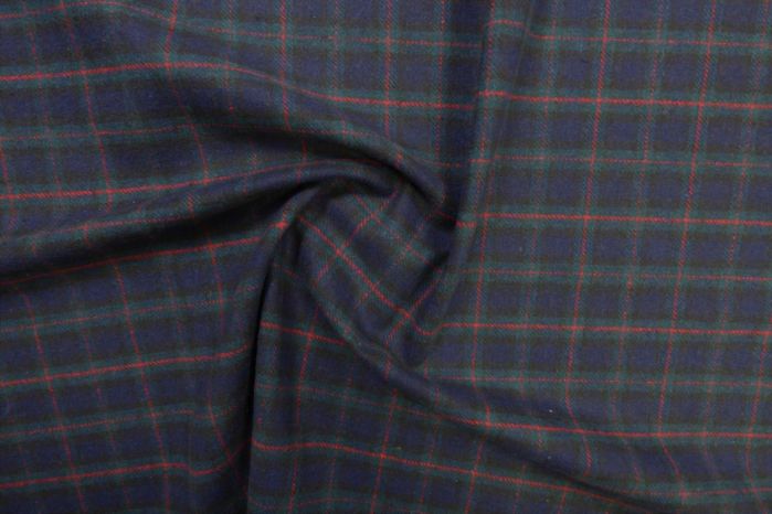A Lovely Quality Cosy Scottish Wool Mix Flannel Clan Tartan-Style Check In Tones Of Dark Oxford Navy, Scarlet, Black And Dark Forest Green