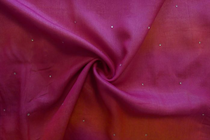 A Beautiful 100% Silk Semi-Sheer Crinkle Chiffon in a Pink and Coral Tie-Dye Featuring Diamantes.