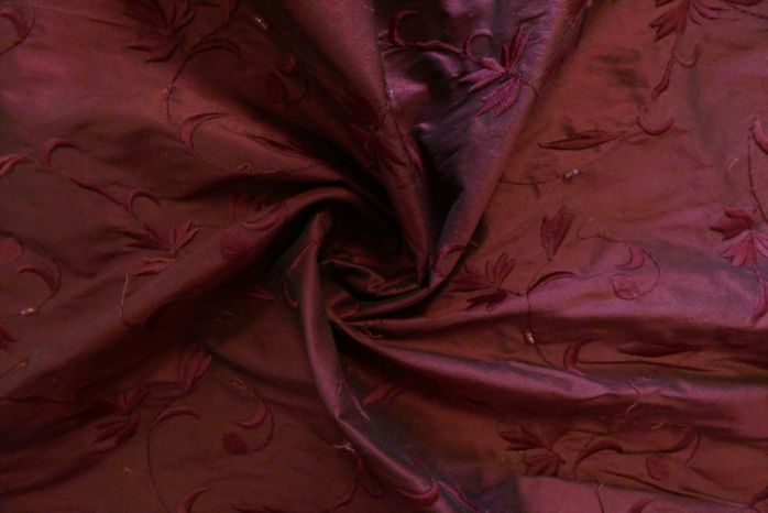 A Beautiful 100% Silk Slubbed Embroidered Dupion In Wine Red Featuring Delicate Beads.