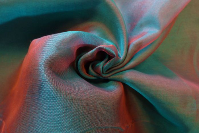 A Lovely Metallic Silk Organza In Kingfisher And Raspberry