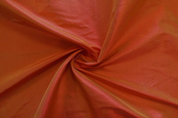 100% Silk 2-Tone Handloom Slubbed 100% Pure Silk Shot Dupion in Sunset Orange Tones.