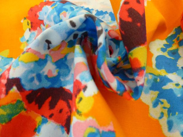 A Sateen Floral Drill In Wounderful Summery Colours - Orange, Sea Blue & Pink